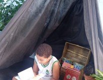 Já na creche Fúlvia Rosemberg, que fica na Cidade Universitária, houve uma leitura do livro “Descobrindo Xingu”, do autor Marco Hailer, feita pela professora Andrezza Correia. Xingu é o nome do Parque Indígena localizado no Mato Grosso, onde vivem 11 etnias.