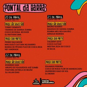 Neste final de semana, nos dias 20, 21 e 22 de abril, a programação do Festival Abril Pra Cultura retorna ao bairro do Pontal da Barra com muita música e cultura no bairro das rendeiras. O evento, que conta com a participação de vários artistas alagoanos, tem movimentado a capital com programação diversa e animada para o público.
