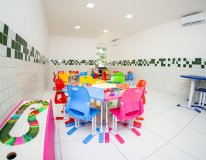A creche conta com playground, jardins, castelo d’água, área de estacionamento, solário, fraldário, pátio coberto, administração, sala de professores e refeitório, tudo com acessibilidade, além de espaço para criação de animais. A creche conta com turmas de berçário integrais, turmas do Maternal integrais, turmas do Maternal II, turmas do 1° período e turmas do 2° período.