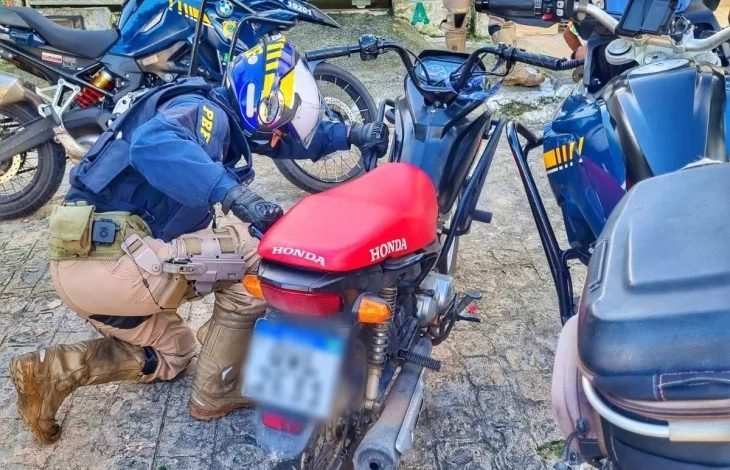 Quando agentes abordaram uma motocicleta Honda/Pop 110 I que ostentava placa com um dos caracteres fora dos padrões originais. Ao realizar as consultas nos sistemas, a pesquisa retornou a motocicleta honda/POP 110 com restrição de roubo ou furto.