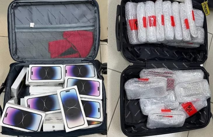 Os itens, todos iPhones, estavam acondicionados em duas malas. O material foi avaliado em R$ 559 mil.