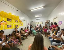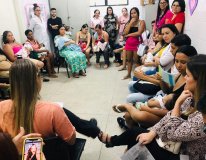 Como primeira atividade da programação, usuárias atendidas da URS Dr. Hamilton Falcão receberam informações sobre a importância do aleitamento para o desenvolvimento infantil, aspectos psicológicos no aleitamento, além de orientações sobre a amamentação.