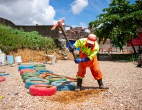 Ao todo, já são 16 grotas visitadas pelo órgão. Além das equipes de educação ambiental passando de porta em porta, a Autarquia também realiza a coleta de resíduos descartados de forma irregular, poda de árvores e a revitalização de espaços públicos com plantio de mudas e reutilização de pneus. No estande instalado nas comunidades, a ALURB oferta também a exposição de animais taxidermizados (empalhados) e pintura facial para divertir as crianças.