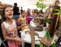 Crianças se divertem em estande com animais taxidermizados. Foto: Secom Maceió