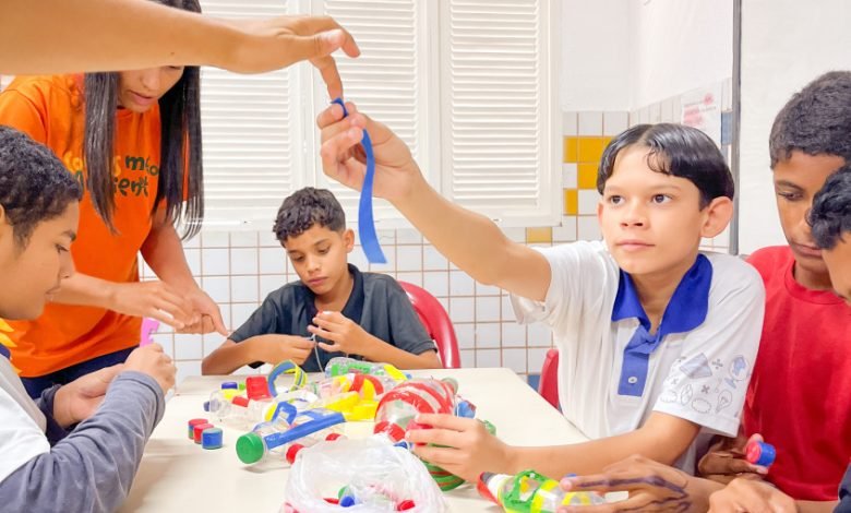 Na ocasião, 10 educadores, entre servidores da Alurb e jovens aprendizes das empresas responsáveis pela coleta domiciliar na capital, trajados com a camisa da campanha “Somos Meio Ambiente”, lançada na última segunda-feira pela Prefeitura de Maceió, ensinaram as crianças como fazer brinquedos, como carrinhos e cata-ventos, a partir de garrafas PET.