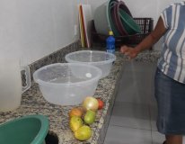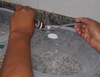 Os participantes também aprenderam a fazer a diluição correta da água clorada, como o alimento deve ser imerso, quanto tempo ele deve ficar na solução, em que concentração e a lavagem correta das frutas.