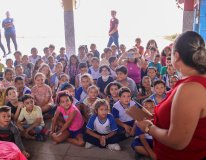Na ocasião, uma equipe do setor de Centros e Núcleos, da Secretaria Municipal de Educação (Semed), entregou kits com informações sobre a data e com recursos pedagógicos para o desenvolvimento do projeto Resgate à Infância – MPT na Escola.