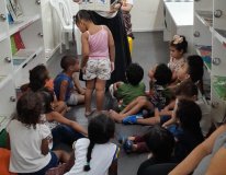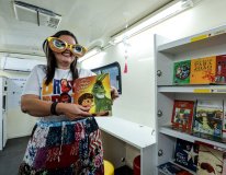 “A ação de hoje foi maravilhosa. Tivemos crianças de primeiro período, que se encantaram. Disseram: ‘e esse ônibus vai andar, vamos viajar nas histórias’. Então eles entendem que é um mundo mágico, nós propiciamos esse mundo. E fazemos com que seja um momento prazeroso, que atraia as crianças para a leitura. Para a comunidade tem sido um momento muito interessante, porque tem criança que nunca viu um ônibus como esse. Enfim, tem sido um grande prazer participar desse projeto”, destacou Maria Lucia.
