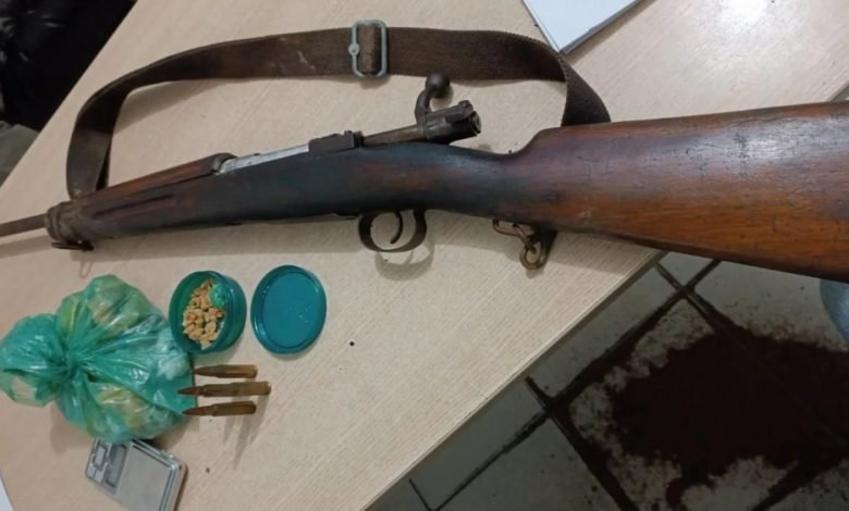 Um suspeito de comercializar drogas foi flagrado com um fuzil na orla Ilha da Crôa, em Barra de Santo Antonio. O acusado ainda tentou abandonar o armamento para fugir do flagrante.