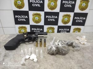 Foi apreendido com o autor um revólver calibre 38, munições e drogas (maconha e crack). A prisão foi fruto de uma abordagem realizada por uma guarnição da Polícia Militar.