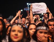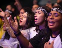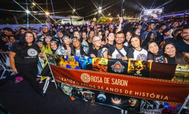 A banda Rosa de Saron, conhecida por seu estilo animado e letras que exaltam a fé, abriu o evento com uma apresentação contagiante. O público cantou e dançou ao som dos sucessos do grupo, como contou a fundadora do fã clube.