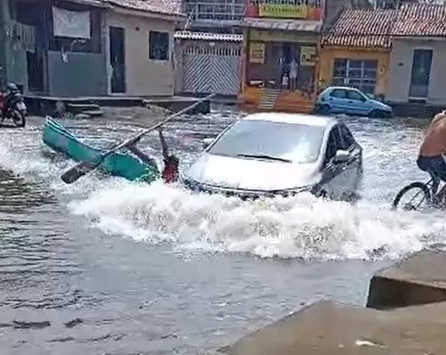 Um incidente inusitado ocorreu quando um homem em uma canoa quase foi atingido por um carro em meio às ruas alagadas do bairro Vergel do Lago, em Maceió, devido às fortes chuvas que assolaram a capital. O incidente mostra, por um lado, a situação de mobilidade comprometida nas ruas, que ficaram completamente inundadas.