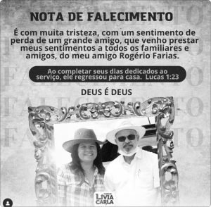 A prefeita da Barra, Livia Carla, também deixou seus pêsames nas redes sociais. “É com profunda tristeza, com um sentimento de perda, que recebo a notícia do falecimento de um dos grandes nomes da política barrense e um grande amigo. Rogério Farias partiu, mas deixou um legado em nossa cidade”.