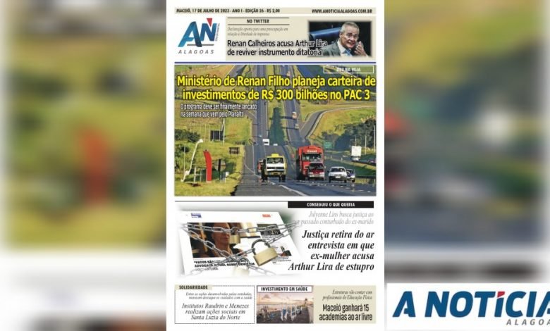 JORNAL A NOTÍCIA DIGITAL – DEU NA VEJA: Ministério de Renan Filho planeja carteira de investimentos de R$ 300 bilhões no PAC 3 O programa deve ser finalmente lançado na semana que vem pelo Planalto JAND-026