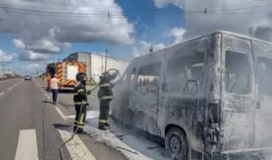 Um incêndio destruiu uma van, que realizava o transporte de estudantes. O caso foi registrado em um trecho da AL-110, no bairro Nova Esperança, na cidade de Arapiraca.