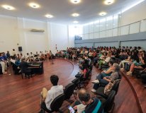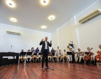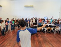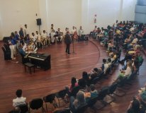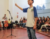 A estudante Milena Andrade, do 9° ano, comentou a experiência: “Estar aqui é fantástico, essa é minha primeira vez no teatro, está sendo uma experiência muito importante. Cantamos e aprendemos sobre o som de cada instrumento que forma o grupo musical”, comemorou.