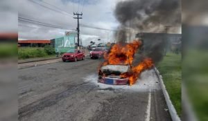 Um casal viveu momentos de tensão , quando o veículo foi tomado por chamas em um trecho da rodovia AL 220, nas imediações da rotatória do Batalhão de Polícia Rodoviária (BPRv), no município de Arapiraca.