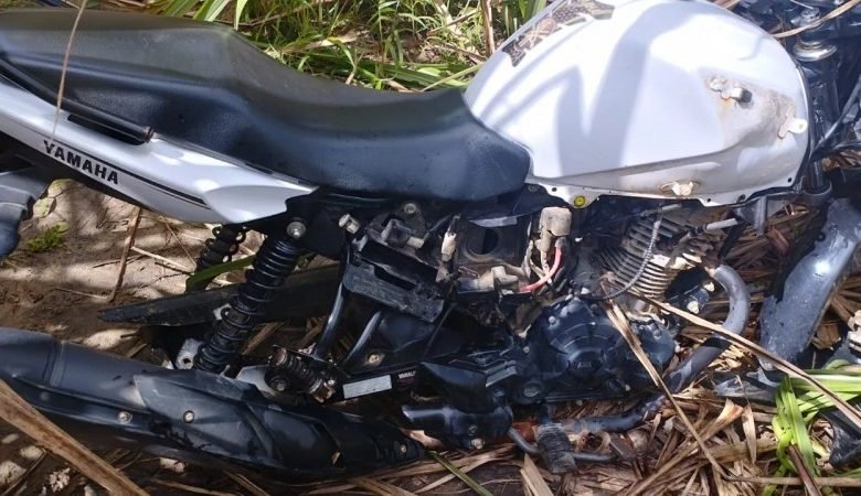 Os policiais foram acionados por um funcionário de uma usina que visualizou a motocicleta Yamaha/YBR 150 Factor, de cor branca, sem as duas rodas e sem a bateria.
