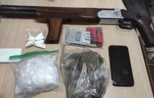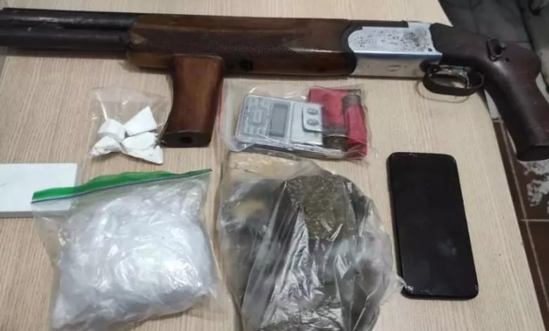 Na residência, foram apreendidas uma espingarda calibre 12, munições, cocaína, maconha, balança de precisão, além de comprimidos de Rohypnol.