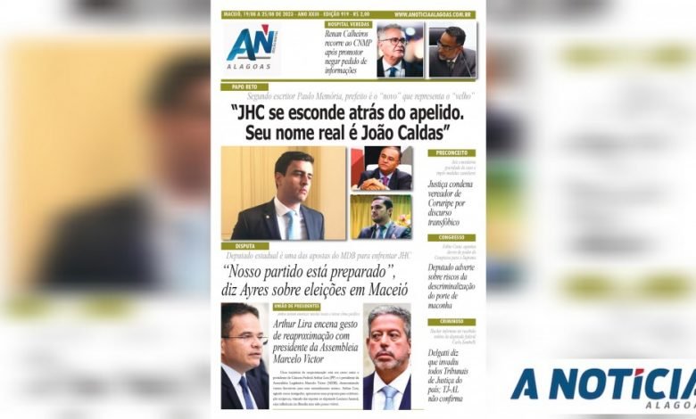 JORNAL A NOTICIA – PAPO RETO: “JHC se esconde atrás do apelido. Seu nome real é João Caldas” Segundo escritor Paulo Memória, prefeito é o “novo” que representa o “velho” JAN-919