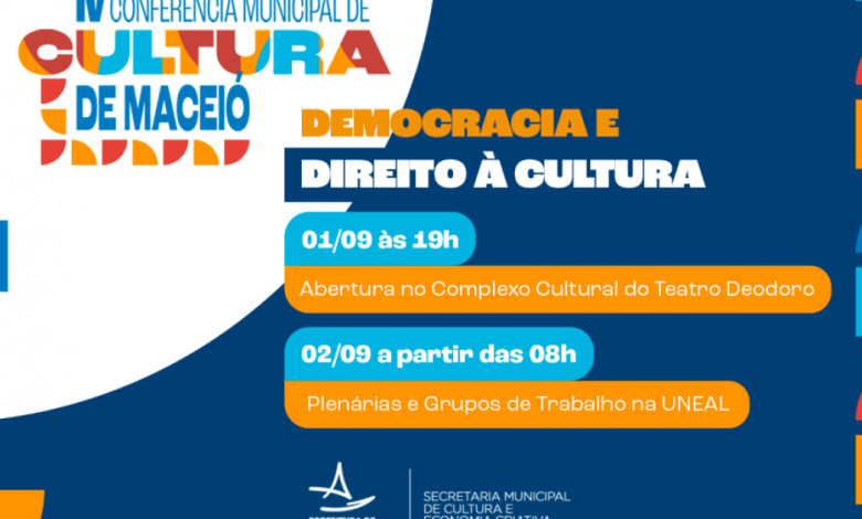 Nos dias 1º e 2 de setembro, a cidade de Maceió se prepara para sediar a 4ª Conferência Municipal de Cultura (CMC), evento que faz parte do cronograma da 4ª Conferência Nacional de Cultura (CNC) e terá como tema central “Democracia e Direito à Cultura”.