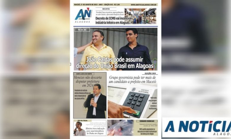 JORNAL A NOTÍCIA DIGITAL – PAI DE JHC: João Caldas pode assumir direção do União Brasil em Alagoas JAND-043