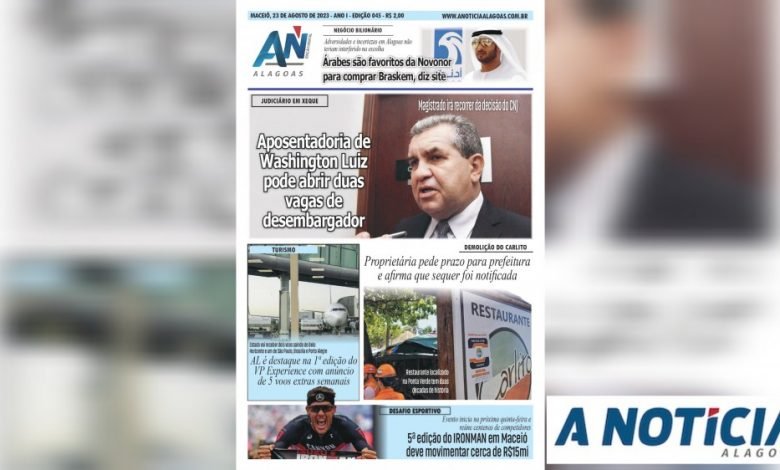 JORNAL A NOTÍCIA DIGITAL – JUDICIÁRIO EM XEQUE: Aposentadoria de Washington Luiz pode abrir duas vagas de desembargador Magistrado irá recorrer da decisão do CNJ JAND-045