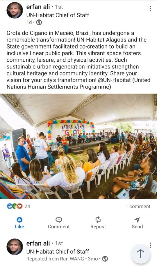 As ações do programa Vida Nova nas Grotas realizadas na grota do Cigano, em Maceió, receberam uma série de elogios do chefe de Gabinete do programa ONU-Habitat no mundo, Erfan Ali. Em uma postagem nas redes sociais, Ali afirmou que a grota passou por uma marcante transformação, e que o ONU-Habitat e o Governo do Estado construíram um parque linear público e inclusivo.