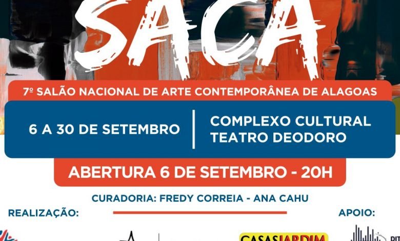A 7ª edição do Salão de Arte Contemporânea de Alagoas (SACA) será realizado em parceria com a Secretaria Municipal de Cultura e Economia Criativa de Maceió (Semce) e ocupará a Galeria de Artes do Complexo Cultural Teatro Deodoro durante todo o mês de setembro, de 6 a 30. A exposição contará com mais de 40 obras de artistas brasileiros, ocupando os dois andares da galeria.