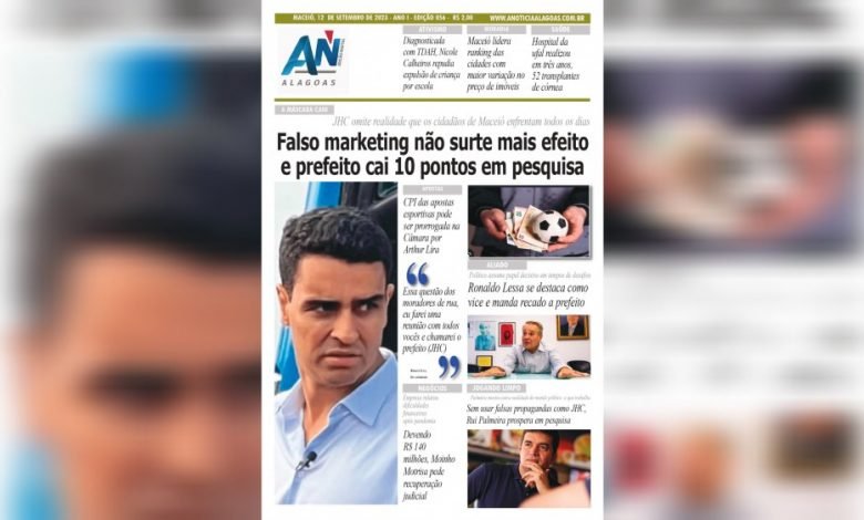 JORNAL A NOTÍCIA DIGITAL – A MÁSCARA CAIU! Falso marketing não surte mais efeito e prefeito cai 10 pontos em pesquisa JHC omite realidade que os cidadãos de Maceió enfrentam todos os dias JAND-056