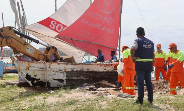MACEIÓ – Operação Praia Limpa reordena jangadas abandonadas na orla de Maceió em parceria com jangadeiros e Colônia de Pescadores