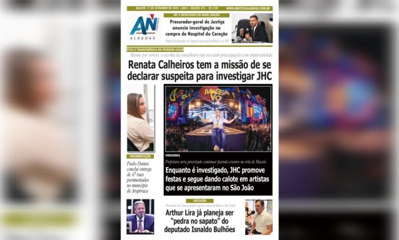 JORNAL A NOTÍCIA DIGITAL – ÉTICA E TRANSPARÊNCIA EM PRIMEIRO LUGAR! Renata Calheiros tem a missão de se declarar suspeita para investigar JHC Mesmo por sorteio, a escolha da conselheira tem suscitado preocupações com imparcialidade JAND-075