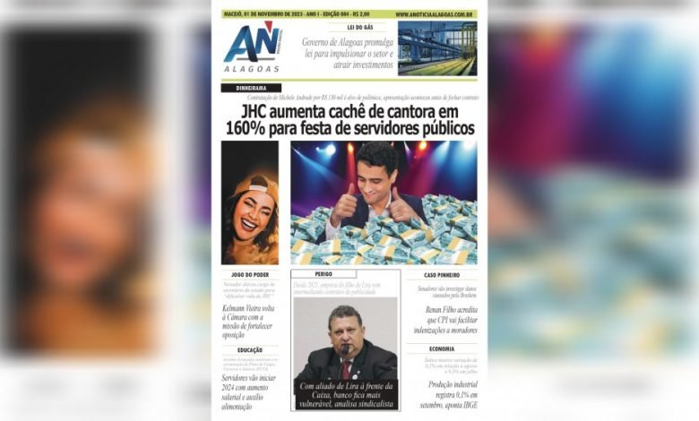 JORNAL A NOTÍCIA DIGITAL – DINHEIRAMA! JHC aumenta cachê de cantora em 160% para festa de servidores públicos ontratação de Michele Andrade por R$ 130 mil é alvo de polêmica; apresentação aconteceu antes de fechar contrato JAND-084