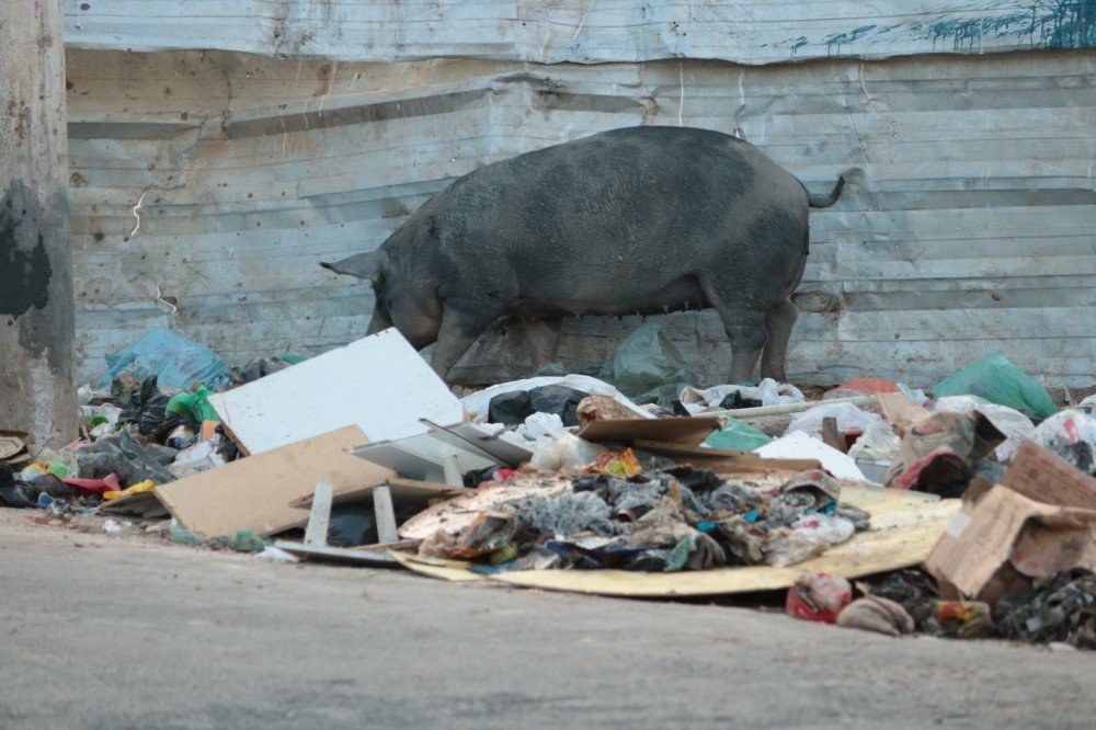 Os tapumes que separam as obras ainda não concluídas do residencial Parque da Lagoa, que abriga moradores da antiga Favela Sururu de Capote, que ocupava, desordenadamente, a região da beira da lagoa, agora são paredes para “montanhas de lixo”. Nelas, homens e porcos fazem uma disputa, cada um à sua maneira, pela próxima refeição.