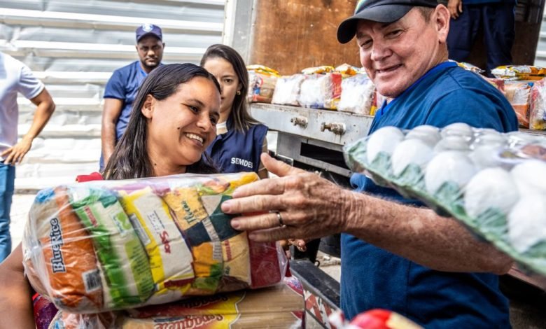 MACEIÓ – Prefeitura de Maceió inicia distribuição de cestas básicas para pescadores afetados pela restrição de pesca na Lagoa Mundaú.