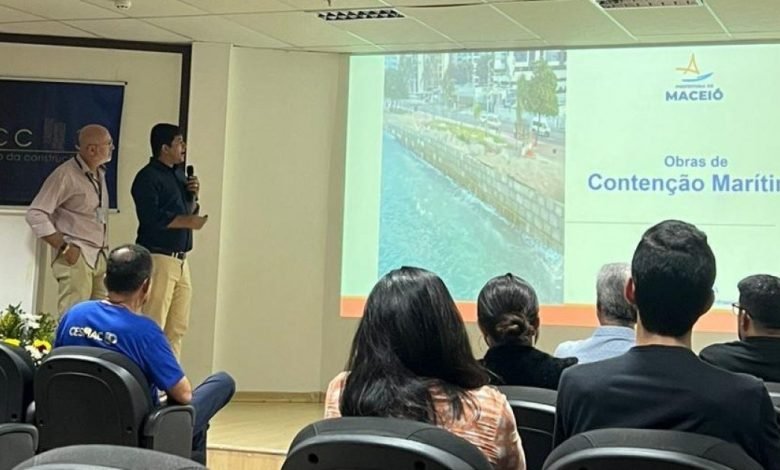 Durante a palestra, os técnicos Pedro Lucas Barros e Cícero Rocha apresentaram detalhes sobre as obras de contenção marítima em andamento na capital alagoana. Eles explicaram a tecnologia utilizada pela Seminfra para conter o avanço da maré em cinco pontos da cidade. Pedro Lucas ressaltou a importância do evento para compartilhar informações sobre a obra e destacou a relevância da proteção costeira de Maceió.