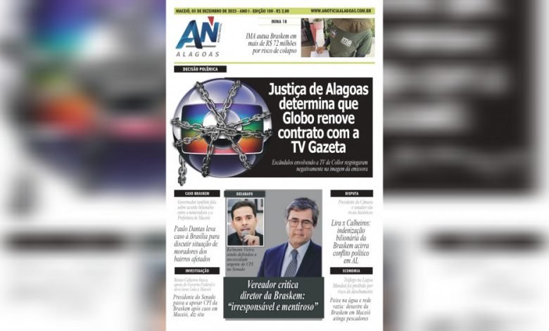JORNAL A NOTÍCIA DIGITAL – DECISÃO POLÊMICA! Justiça de Alagoas determina que Globo renove contrato com a TV Gazeta Escândalos envolvendo a TV de Collor respingaram negativamente na imagem da emissora JAND-100