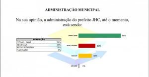 Comparando com a pesquisa anterior, realizada em outubro pelo mesmo instituto, os resultados são evidentes. Na questão estimulada sobre a avaliação do governo de JHC, a aprovação, representada por ótimo/bom, caiu de 71% para 58%. A queda foi de 13 pontos percentuais, o que corresponde a quase 20% de redução na avaliação positiva do prefeito.
