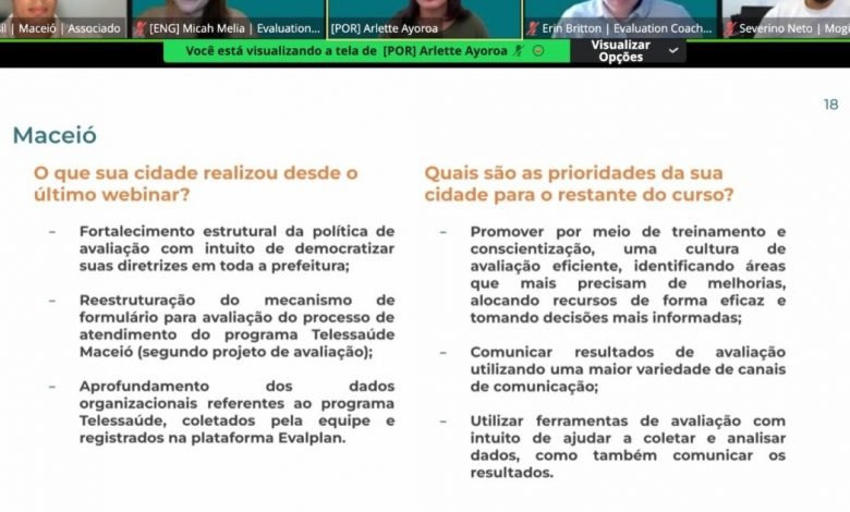 Além disso, Arlette Ayoroa, Coach do programa City Data Alliance (Bloomberg Philanthropies) responsável pela cidade de Maceió, anunciou que a cidade está intensificando esforços no desenvolvimento de sua política de avaliação. “Rascunhos já foram elaborados, e em janeiro, avançaremos ainda mais, incluindo a criação de um plano específico para o Telessaúde”, afirmou. Este compromisso evidencia a busca constante por melhorias na qualidade de vida dos cidadãos por meio de práticas avaliativas eficazes.
