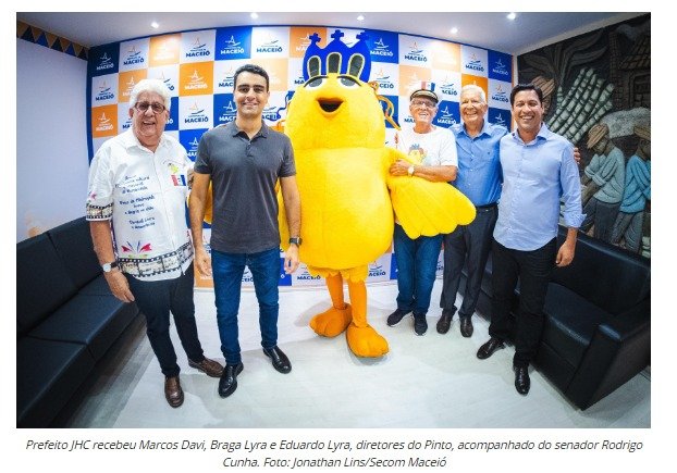 Em Maceió, o patrocínio ao Pinto saiu não última hora, ainda assim foi antecedido por uma sessão de frevo e fotos na prefeitura, com direito a postagens nas redes sociais do prefeito JHC, que foi recebido no desfile do bloco no sábado como convidado de honra.