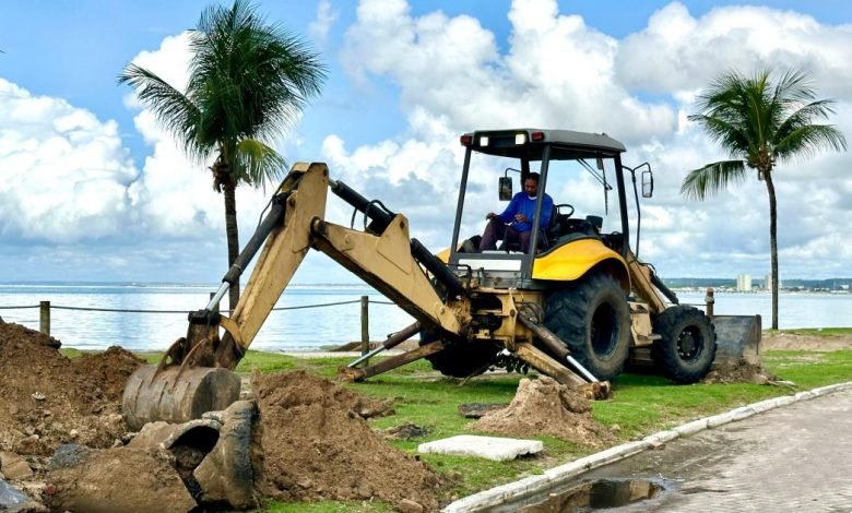 MACEIÓ – Seminfra inicia obras de recuperação de galeria no bairro do Jaraguá, próximo ao Porto de Maceió, devido a ponto de alagamento após chuvas.