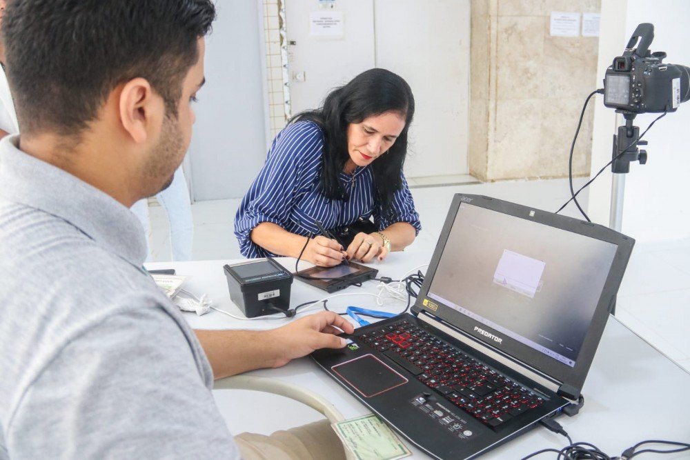 Com a documentação necessária em mãos, eles realizaram todas as etapas do procedimento, como a coleta das informações e das digitais, assinatura e a imagem do requerente (foto).