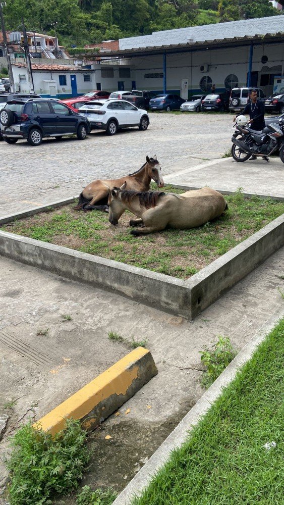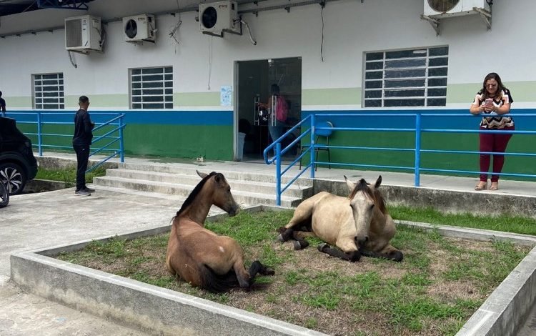 Nas redes sociais, circulam fotos de cavalos tranquilamente deitados nos corredores da Secretaria Municipal de Educação de Maceió (Semed), acompanhadas por vídeos que mostram tetos desmoronando.