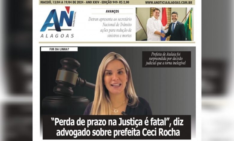 JORNAL A NOTÍCIA – FIM DA LINHA? “Perda de prazo na Justiça é fatal”, diz advogado sobre prefeita Ceci Rocha Prefeita de Atalaia foi surpreendida por decisão judicial que a torna inelegível JAN-949