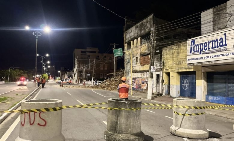 MACEIÓ – Desabamento de prédio abandonado na Avenida da Paz leva Defesa Civil de Maceió a interditar trecho e iniciar demolição.