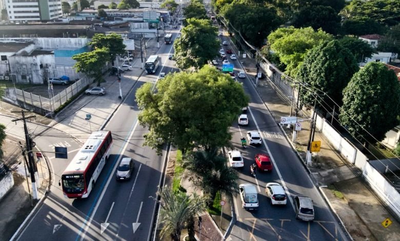 MACEIÓ – Defesa Civil de Maceió realiza projeção de copas de árvores na Av. Fernandes Lima para garantir segurança de pedestres e ciclistas.