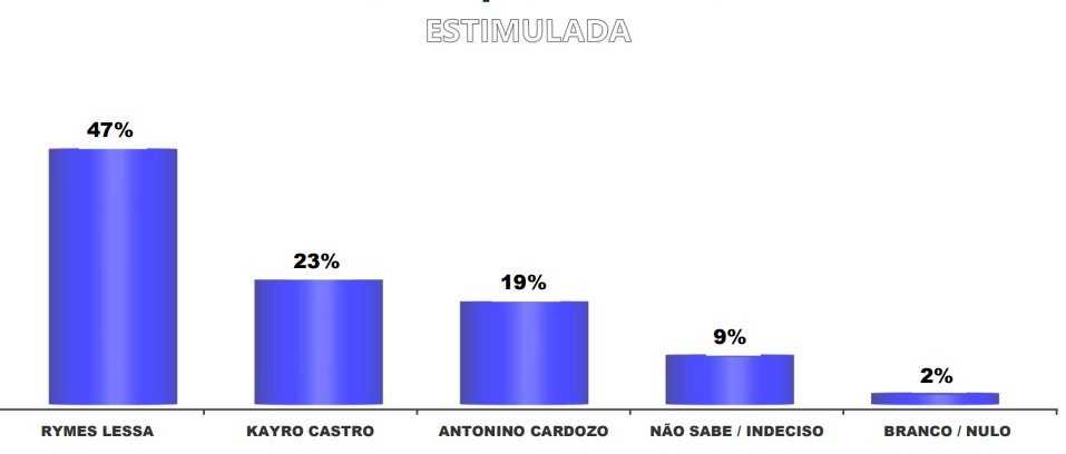 Já no cenário estimulado, Lessa mantém a liderança com 47%, Castro aparece com 23% e Cardozo com 19%. Nesse contexto, 9% dos entrevistados estavam indecisos ou não souberam responder, e 2% votariam em branco ou nulo.