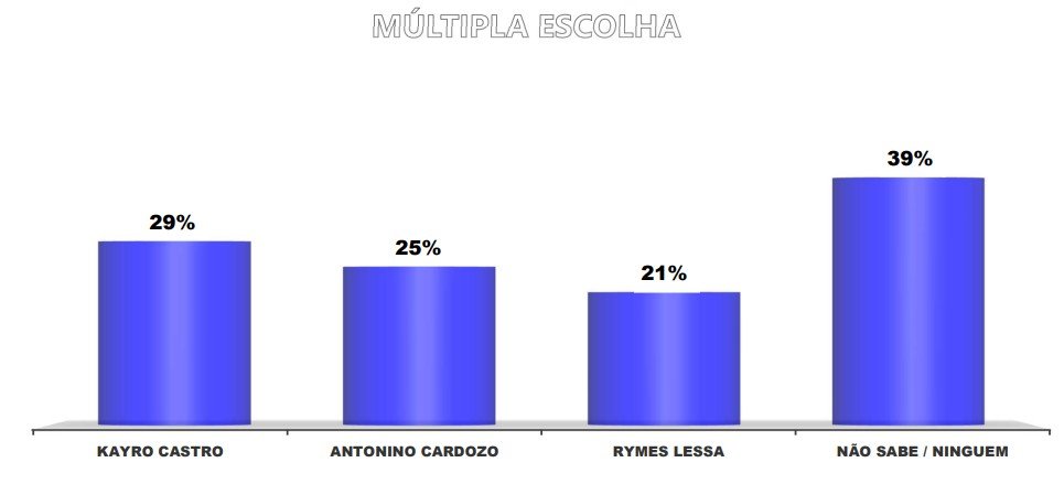 Quando questionados sobre em qual candidato não votariam de jeito nenhum, 29% dos entrevistados mencionaram Kayro Castro, seguido por Antonino Cardozo com 25% e Rymes Lessa com 21%. Outros 39% dos participantes não souberam responder a essa pergunta.