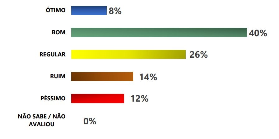 A gestão do atual prefeito, Djalma Beltrão, foi avaliada como boa por 40% dos entrevistados, enquanto 26% a consideraram regular e 8% ótima. Por outro lado, 14% avaliaram a administração como ruim e 12% como péssima. No geral, 66% dos entrevistados aprovam a administração municipal, enquanto 33% desaprovam e 1% não soube responder.