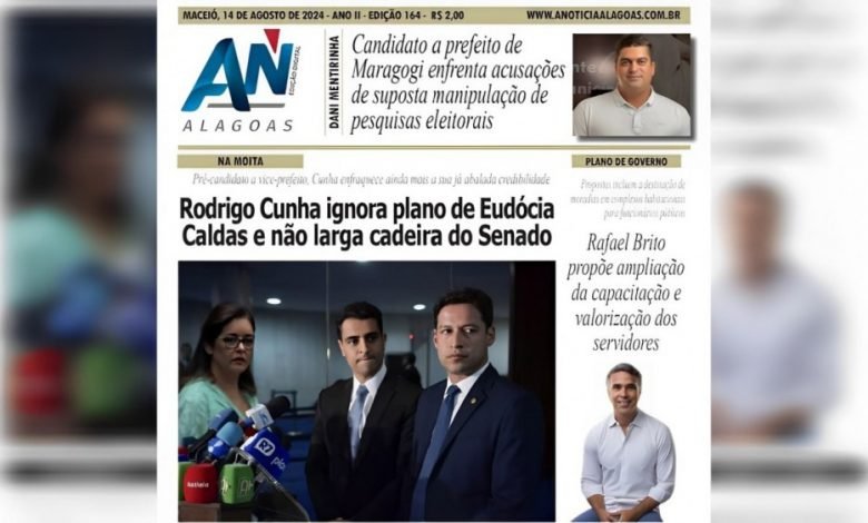 JORNAL A NOTÍCIA DIGITAL – NA MOITA Rodrigo Cunha ignora plano de Eudócia Caldas e não larga cadeira do Senado